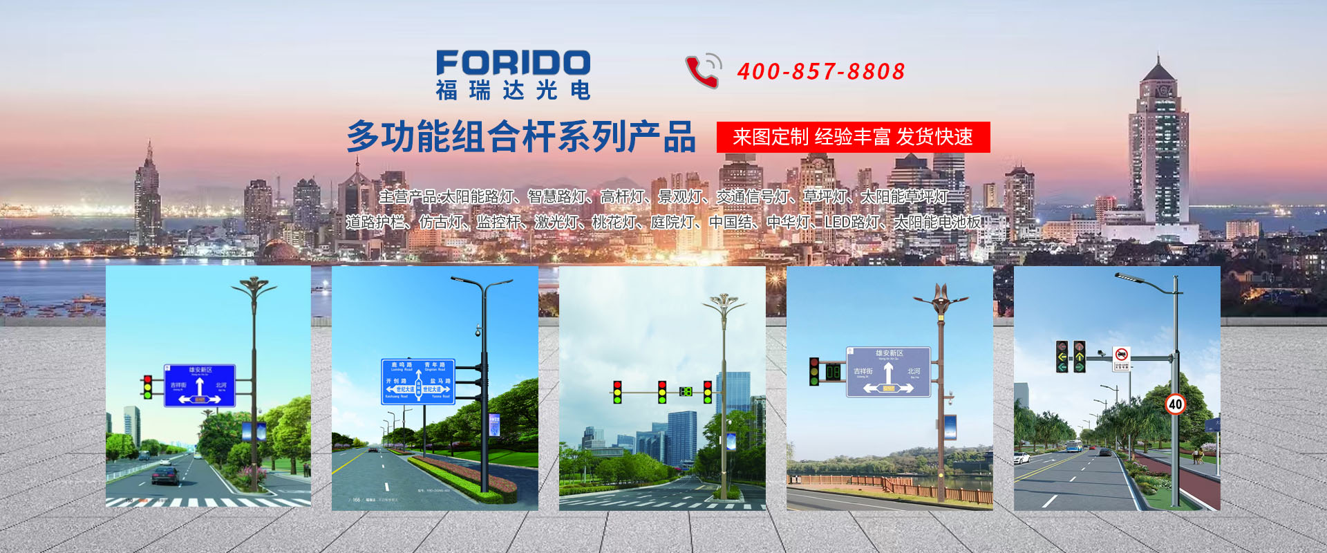 揚州福瑞達光電科技有限公司位于淮左名都歷史文化名城、中國路燈制造基地揚州市北郊菱塘工業(yè)園,公司占地面積76000平方米,注冊資金10518萬元,擁有高級技術(shù)嫻熟的員工280多人,擁有大型折彎機、激光切割、數(shù)控注塑機、壓鑄機、自動埋弧焊、氣焊、彩色粉末靜電噴塑等大型自動化設(shè)備,我公司是一家集設(shè)計、研發(fā)、生產(chǎn)、銷售、施工安裝服務(wù)為一體的戶外交通照明產(chǎn)品制造商,主要生產(chǎn)智慧路燈、太陽能路燈、LED路燈、高桿燈、景觀燈、交通信號燈、交通標志牌、通信鐵塔、路跨鋼結(jié)構(gòu)、公交站臺、太陽能光伏組件、景點亮化、樓宇亮化工程的設(shè)計施工等。公司秉承開拓創(chuàng)新、銳意進取、精誠服務(wù)的企業(yè)精神,堅持以“誠信為本、技術(shù)為先、服務(wù)是金”的合作理念,我們憑借先進的制造工藝、優(yōu)質(zhì)的產(chǎn)品質(zhì)量、合理的市場價格和完善的售后服務(wù)贏得了廣闊的市場和客戶的信賴?! ∥夜疽淹ㄟ^ISO9001質(zhì)量體系認證、ISO14001環(huán)境管理體認證,CQC產(chǎn)品認證,中國節(jié)能產(chǎn)品認證,通過“CCC”強制性產(chǎn)品認證,具有市政總承包,照明,交安,設(shè)計等資質(zhì)···